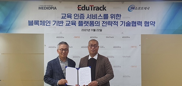 업체 측에 따르면 에듀테크 솔루션 개발 및 공급 전문 기업인 메디오피아테크는 지난 2년 여 간 자체 연구개발을 통해 차세대형 LMS(에듀트랙 v7.0) 출시와 함께 중장기 고도화 방안으로서 블록체인 기술의 적용에 대한 필요를 파악하게 됐다. 이에 따라 블록체인 전문 기업인 소프트제국과의 전략적 협력 관계 구축을 추진하게 됐다는 설명이다.