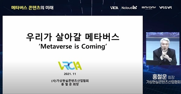 [세계비즈=박혜선 기자] ㈔가상현실콘텐츠산업협회(회장 홍철운)은 현재 메타버스 사업을 실제 진행하고 있는 ‘엔클라우드24’, ‘메이데이파트너스’, ‘브이리스브이알’, 그리고, 가상현실콘텐츠산업협회의 메타버스 전문가와 함께 “메타버스 콘텐츠의 미래”라는 주제로 성황리에 웨비나를 진행했다고 24일 밝혔다.