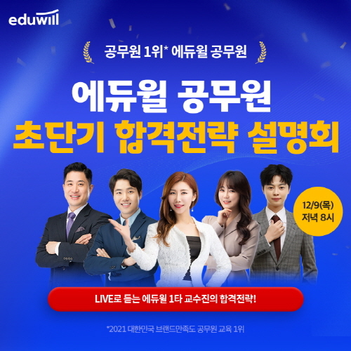에듀윌 공무원은 설명회 진행에 앞서 12월 9일 오후 7시 30분까지 사전 신청을 받고 있다고 전했다.