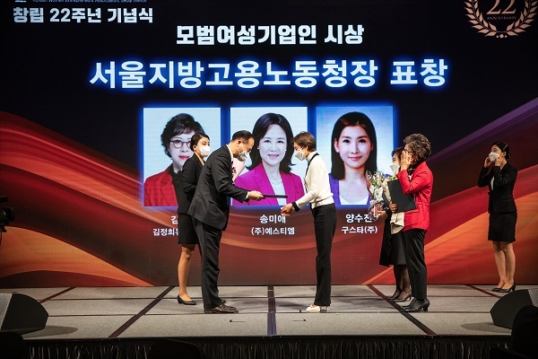 [세계비즈=박보라 기자] 클린뷰티 기업 구스타 양수진 대표가 지난 15일 한국여성경제인협회 서울지회 창립 22주년 기념식에서 모범여성기업인 서울지방고용노동청장 표창을 수상했다고 30일 밝혔다.
