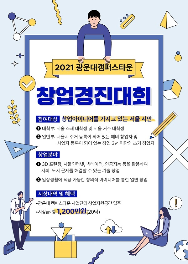 [세계비즈=박보라 기자] 서울특별시와 노원구, 광운대학교가 지원하는 광운대 캠퍼스타운 창업경진대회가 오는 8일까지 참가신청을 받고 있다고 1일 밝혔다.