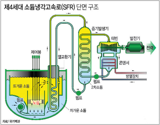 소듐냉각고속로(SFR)는 액체 소듐을 냉각재로 사용하는 원자로다. 높은 에너지의 고속중성자를 이용한 핵분열 반응에서 생산된 열에너지를 소듐 냉각재로 전달해 증기를 발생시키고, 이 증기로 터빈을 구동해 전기를 생산한다.