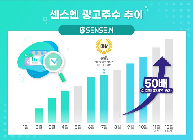 ‘센스엔’은 광고 집행에 어려움을 겪고 있는 초보 광고주와 중소상공인을 위한 디지털 마케팅 올인원 서비스다. 플레이디는 코로나19 이후 어려움을 겪고 있는 중소상공인을 돕고, 예산을 효율적으로 사용하면서도 편리하게 광고를 접할 수 있도록 하기 위해 지난 3월 ‘센스엔’을 정식 출시했다. 출시 4개월 만인 지난 7월, 그 기술력을 인정받아 ‘2021 대한민국 디지털애드어워즈’ 테크 솔루션 애드테크 부문에서 대상을 수상한 바 있다.