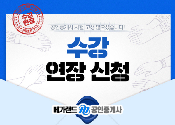 32회 공인중개사 불합격생 중, 메가랜드의 ‘평생 합격땅’, ‘2시간 합격땅’ 수강생은 기간 내 수강연장 신청이 가능하다.