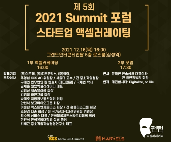 [정희원 기자] 제5회 2021 KCS(Korea CEO Summit) 스타트업 엑셀러레이팅 투자 심사에 전략그룹 팬텀엑셀러레이터가 참가한다.