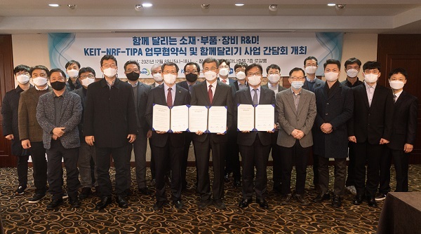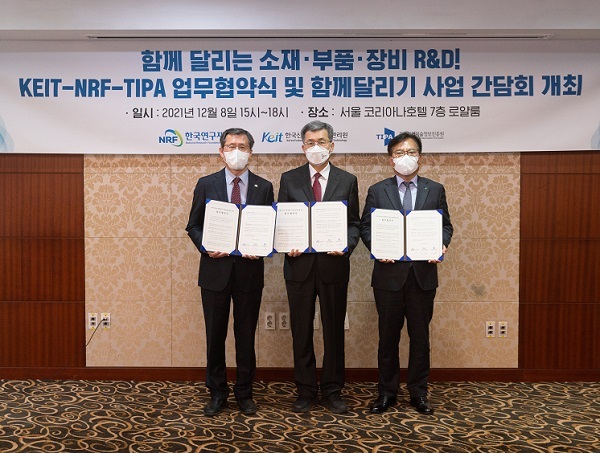 KEIT와 NRF, TIPA는 3개 부처(산업부, 과기부, 중기부)에서 부처 협업으로 추진하고 있는 ‘소부장 R&D 함께달리기’ 사업 전문기관(전담기관)이다. 함께달리기 사업의 성공적인 수행을 위해 부처별 칸막이를 없애고 협력을 강화하자는 의미에서 이번 MoU를 추진했다.