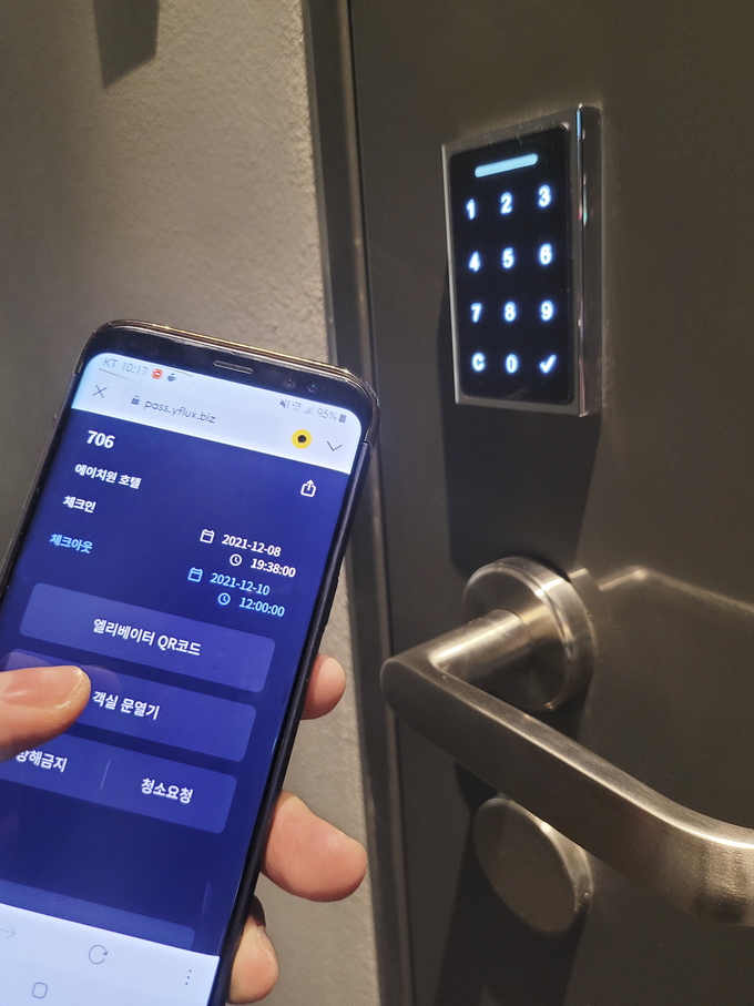 이와 함께 호텔 직원은 스마트폰으로 객실관리 시스템에 접속해 입실∙퇴실 현황, 투숙 여부, 고객 요청 사항, 객실 상태 등 정보를 실시간으로 확인할 수 있다. 객실 내 탑재된 감지 센서를 통해 고객 투숙 여부를 알 수 있기 때문에 효과적인 전력 운용도 가능하다. 아울러 객실 출입문의 개폐 현황이 별도 이력으로 관리되기 때문에 호텔 보안을 한층 강화할 수 있다.