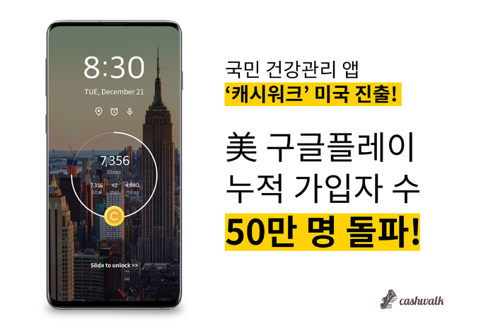 지난해 12월 공식 론칭한 미국 캐시워크는 ‘걷기’ 운동의 습관화에 강력한 동기를 부여하는 실용성에 호응한 미국 사용자들이 늘어나면서 누적 가입자 수가 꾸준히 증가했다. 론칭 약 반 년 만인 올해 6월 기준 10만 명을 돌파한 후 출시 1년 만에 50만명을 넘어섰다.