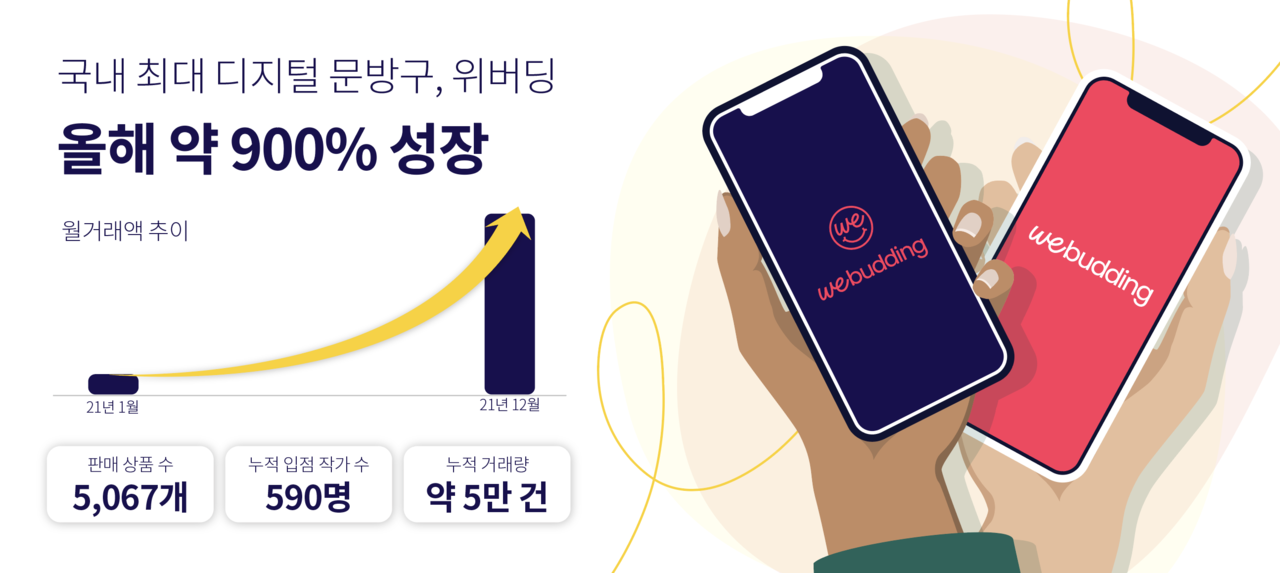 [세계비즈=권영준 기자] 누트컴퍼니㈜의 디지털 문구 플랫폼 ‘위버딩(Webudding)’이 누적 콘텐츠 수 5000건, 거래량 5만건을 돌파하여 연초 대비 9배의 월 거래액 성장을 기록했다고 28일 밝혔다.