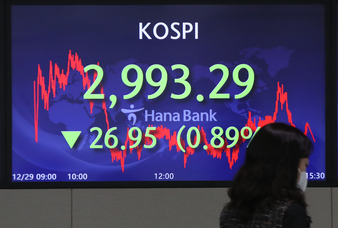 [세계비즈=주형연 기자] 올해 배당락일인 29일 코스피지수는 전 거래일보다 0.89% 내린 2993.29에 장을 마감했다.