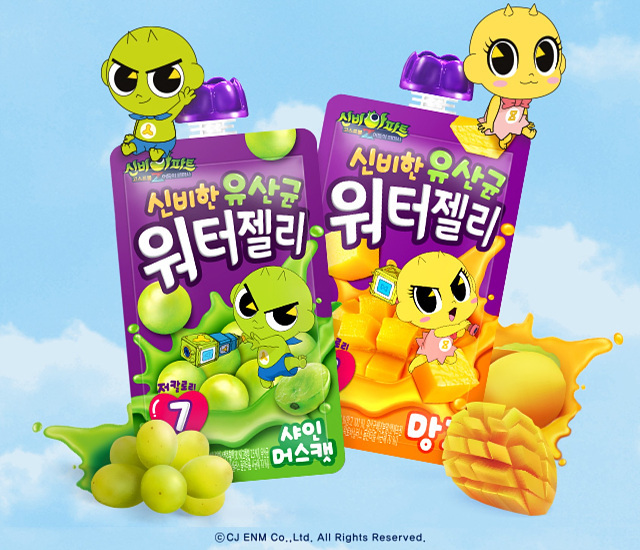 업체에 의하면 신비한 유산균 워터 젤리는 아이들이 먹는 건강 간식으로 기획한 제품인 만큼 성분과 안전성을 최우선으로 생각했다. 또한 일반적인 젤리와 달리 음료처럼 부드러운 ‘워터 젤리’로 아이들이 먹기 쉽고 혹시 모를 뚜껑 목 넘김 사고 방지를 위한 특별 ‘안전캡’을 사용했다. 신비아파트의 메인 캐릭터, 신비와 금비가 그려진 신비한 유산균 워터젤리는 새콤하고 달콤한 샤인머스캣, 달달하고 진한 망고 두 가지 맛으로 만나볼 수 있다.