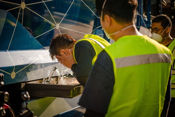 또한 쓰레기 수거 작업 중에 오물이 묻어도 제대로 씻을 수 없는 환경미화원들의 어려움을 해결하기 위해 수소연료전지 시스템에서 배출되는 순수한 물을 활용한 간이 세면대를 마련해 위생을 지키도록 배려했다.
