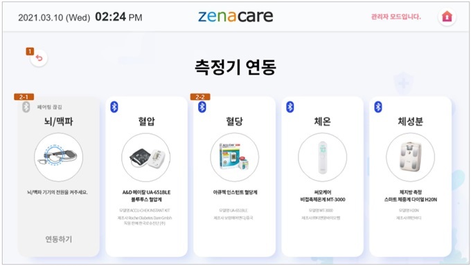 업체에 의하면 이번에 인증받은 제나케어(zenacare)는 에이아이톡(AItok) 키오스크의 핵심 솔루션이다. 블록체인 및 영지식증명 기반의 정보보안 기술과, 비접촉 방식의 생체정보 측정/분석 기술 Vision AI, 정신질환 예측 인공지능 알고리즘이 탑재돼있으며, 5종(혈압계, 혈당계, 체지방계, 뇌/맥파계 등)의 IoT 의료기기가 연동돼 다양한 신체 정보를 측정하고 분석한 결과를 사용자의 스마트폰에서 확인할 수 있는 기능을 제공한다.