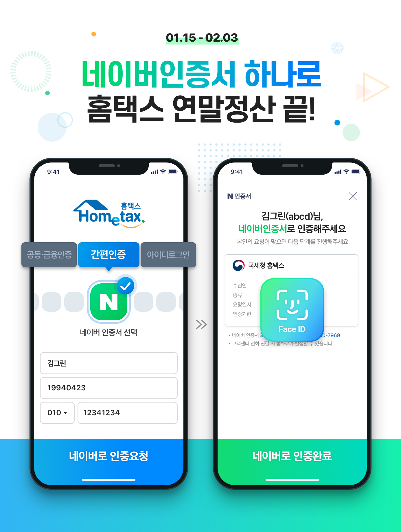11일 네이버에 따르면 오는 15일부터 2월3일까지 진행되는 ‘국세청 연말정산 간소화 서비스’에 네이버 인증서를 적용했고 ▲홈택스 웹사이트 ▲손택스 모바일 앱에서 이용 가능하다고 밝혔다. 네이버 인증서로 본인 인증 후 자료 제공 동의 신청, 간소화 자료 조회 등 연말정산 간소화 서비스를 이용 가능해 이용자 편의성이 높아질 것으로 기대된다.