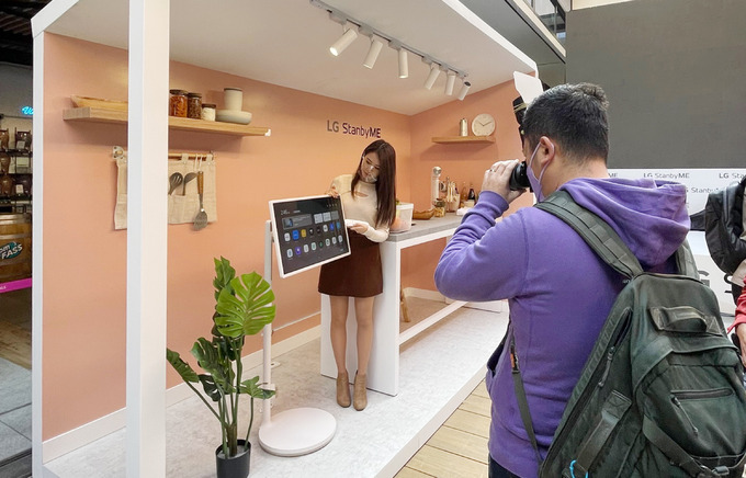 LG전자는 거실·주방과 같이 집 안 공간으로 꾸민 4개의 체험부스를 마련하고 LG 스탠바이미의 다양한 활용 사례를 소개했다. 행사장은 각 공간별로 다양한 시청 경험은 물론, 애플 에어플레이(Airplay) 기능을 활용해 모바일 기기와 화면을 연동하거나 집 안 가전의 작동상태를 확인하고 제어하는 등 제품을 자유롭게 체험할 수 있도록 꾸며졌다.