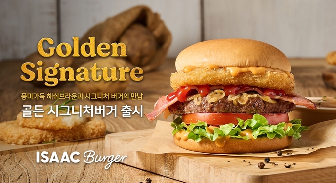 신제품은 이삭버거의 대표 메뉴 ‘이삭 시그니처 버거’에 황금빛 해쉬브라운이 첨가된 메뉴다. 회사 측에 따르면 은은한 스모크향의 그릴소스에 육즙을 머금은 100% 순쇠고기 어니언 패티, 바삭한 베이컨과 신선한 양배추, 토마토 등에 해쉬브라운의 바삭하고 고소한 식감이 더해져 더욱 풍성한 맛을 제공한다.