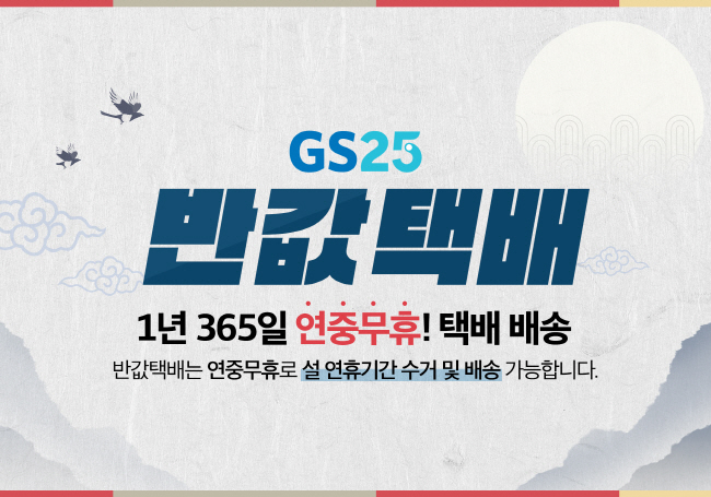 [세계비즈=박보라 기자] GS25가 오는 26일부터 2월 2일까지 이어지는 설 연휴기간에도 GS25 반값택배 서비스를 정상 운영한다고 22일 밝혔다.