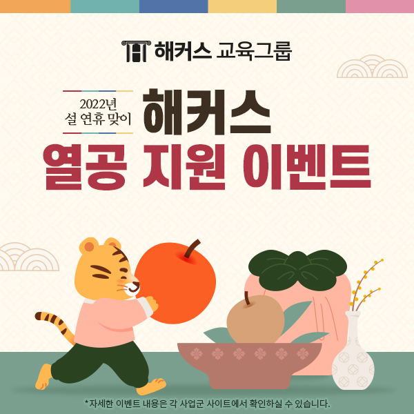 [세계비즈=박보라 기자] 해커스 교육그룹이 2022년 임인년 설 연휴를 맞이해 수험생들을 위한 다양한 이벤트를 선보였다고 30일 밝혔다.
