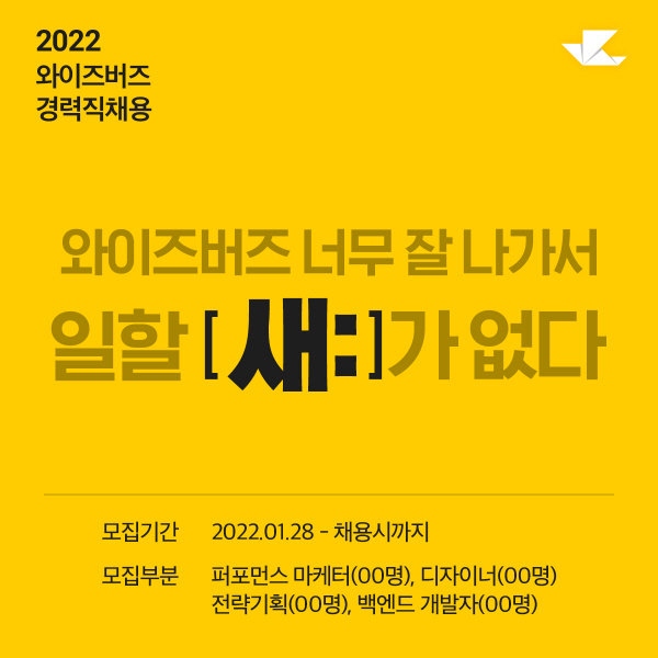 [세계비즈=황지혜 기자] 애드테크(AdTech) 기반 종합 디지털 광고 회사 와이즈버즈가 경력사원을 대규모 공개 채용한다고 28일 밝혔다.