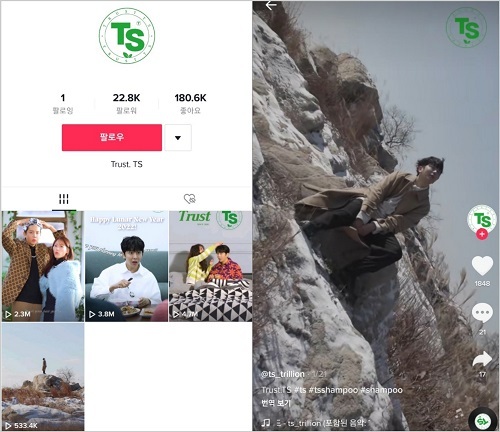 일상 속 아이디어가 돋보이는 유쾌한 콘텐츠 위주로 진행하고 있으며 향후 TS샴푸의 CM송을 이용한 글로벌 틱톡커들과의 컬래버레이션을 목표로 하고 있다고 업체 측은 전했다.