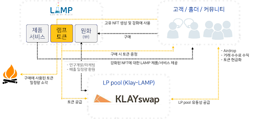 LAMP 토큰은 사용자 고유의 NFT를 발행하고 이를 강화하는 방식으로 활용되며, 강화된 등급에 따라 램프 제품과 서비스를 제공하는 방식으로 2023년 4월부터 활용될 예정이다.