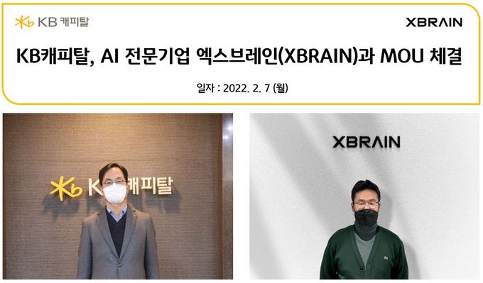 이날 협약식은 비대면 화상 협약식으로 진행됐으며 황수남 KB캐피탈 대표이사, 최진영 엑스브레인 대표이사 및 주요 관계자들이 참석했다.