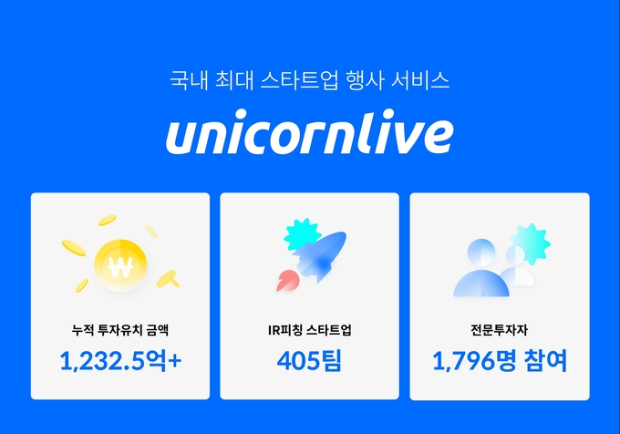 해당 보고서에 따르면 지난해 유니콘LIVE를 통해 총 47개의 행사가 진행됐고 누적 시청수 15만 4143회를 기록했다. 행사에는 유망 스타트업 405개 사가 참여해 IR피칭을 진행했고 총 309개 투자기관에 소속된 전문투자자 1796명이 IR피칭을 시청했다. 특히 참여 스타트업이 행사를 통해 1232.5억 원 투자유치에 성공하며 단순 행사로 끝나는 것이 아닌 투자집행까지 연결될 수 있는 스타트업-전문투자자 네트워크 행사로 평가받고 있다고 업체 측은 전했다.