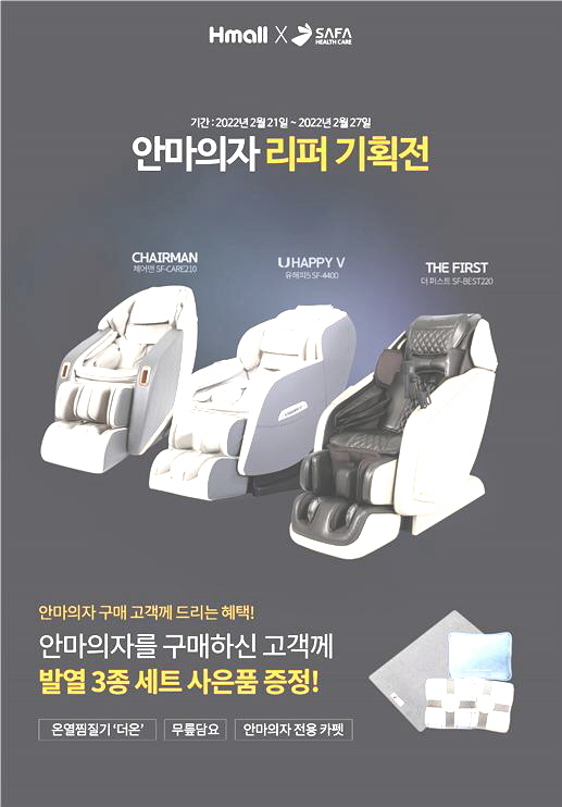 [세계비즈=이경하 기자] 안마의자 전문업체 사파헬스케어는 오는 21일부터 7일간 현대Hmall을 통해 고급사양의 S급 리퍼 상품을 한정 수량으로 특가에 제공하는 기획전을 진행한다고 14일 밝혔다.