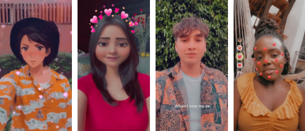스냅챗은 현실의 모습을 사랑스러운 곰인형으로 변신시키는 커들리 베어(Cuddly Bear), 하트를 뱉어내는 보미팅 하트(Vomiting Hearts), 사용자의 머리를 브로콜리로 합성하는 브로콜리 헤드(Broccoli Heads), 만화 속 주인공으로 합성시켜주는 애니메&카툰(Anime&cartoon), 입술을 원하는 립스틱 색상으로 연출하는 카자뷰티(KAJA Beauty) 기능도 추가했다.