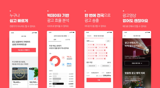 애드튠에 접속해서 광고를 원하는 지역과 기간 등을 설정하면 광고 비용을 즉각적으로 확인할 수 있으며, 광고영상을 등록하고 결제하면 선택한 지역의 광고매체를 통해 내가 등록한 광고가 송출된다. 또한 송출할 광고영상이 없는 광고주들을 위한 광고 제작 상품도 함께 마련했기 때문에 모바일 앱 하나만으로 광고제작부터 송출까지 가능하다고 업체 측은 밝혔다.