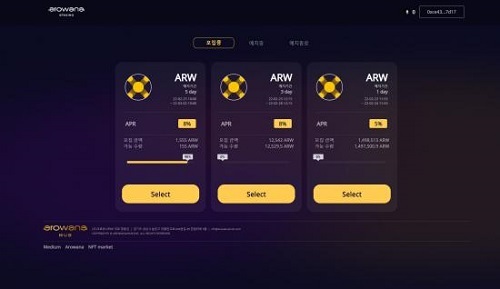 아로와나 토큰의 스테이킹 서비스는 7일, 30일, 90일, 365일 등 기간에 따라 구분된 풀(Pool)을 통해 할 수 있다. 장기 홀더를 위해 예치 기간이 늘어날수록 높은 이자율을 책정했으며, 이용자의 투자 성향에 맞춰 예치 기간을 정할 수 있도록 다양한 선택지를 제공한다.