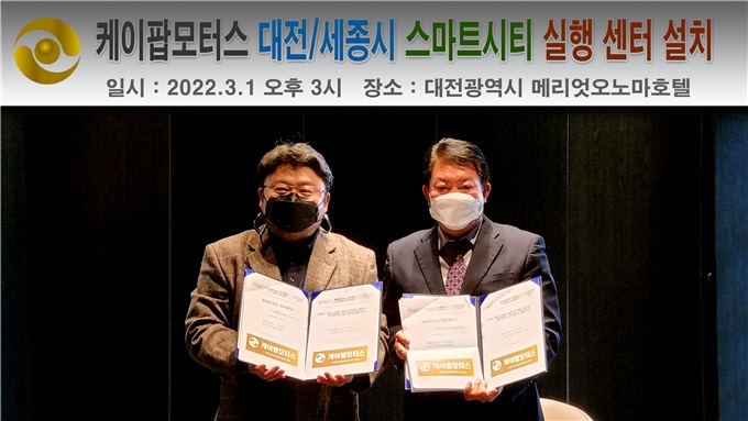 케이팝모터스는 지난 1일 대전광역시 메리엇 오노마호텔에서 ‘스마트시대의 조기정착화’를 위해 전국 지자체 중 처음으로 스마트시티 및 친환경 전기자동차 정책을 강화하고 있는 대전광역시 및 세종특별자치시 지역을 중심으로 케이팝모터스가 생산한 전기자동차 관련 제품을 판매하는 전기자동차 전시 판매 센터 개설에 착수했다고 발표했다.