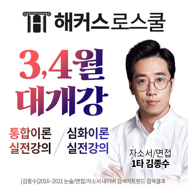자기소개서 전문 김종수 교수는 맞춤형 자소서 특강을 1회 진행하고 25개 로스쿨 합격생의 자소서 샘플을 제공해 수험생들의 자소서 작성을 돕는다. 또한 작성한 자소서를 개인별 1:1 첨삭도 3회 진행해 완벽한 자소서를 작성할 수 있도록 한다.