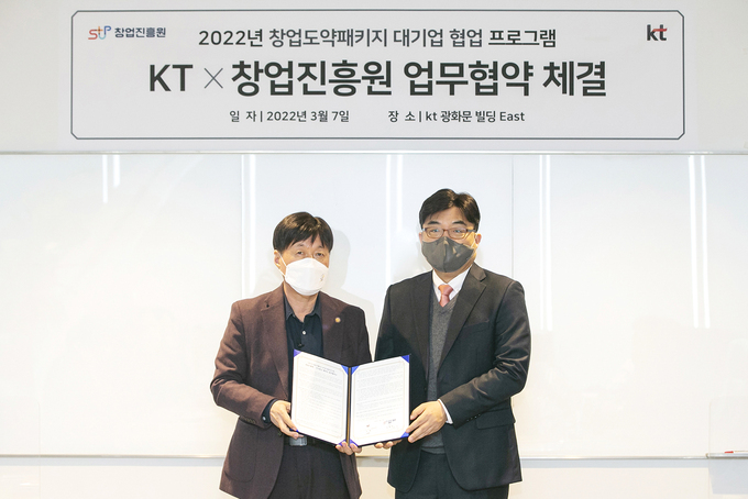 이번 협약으로 KT는 중소벤처기업부ㆍ창업진흥원이 시행하는 ‘창업도약패키지-대기업 협업 프로그램’을 공동 수행하고 ▲5G 응용 분야 우수 창업 기업 선발 ▲공동 사업화 과제 선정 및 기술검증(PoC), 비즈니스 환경 지원 ▲사업화 자금 및 투자 연계 지원 등에 상호 협력할 예정이다.