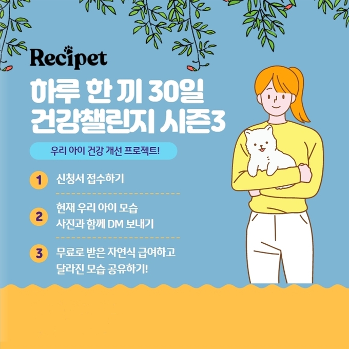 ‘하루 한 끼 30일 건강챌린지’ 시즌3 캠페인의 자세한 내용은 레시펫 공식 홈페이지 및 인스타그램에서 확인할 수 있다.