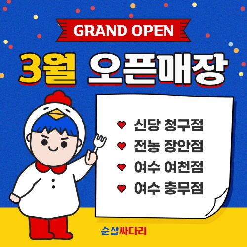 순살싸다리는 이달 들어 신당 청구점과 전농 장안점까지 오픈했다고 밝혔다.