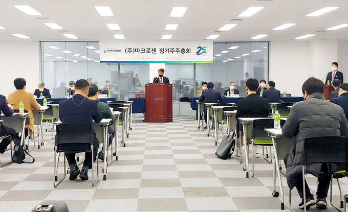[세계비즈=김민지 기자] 정밀의학 생명공학기업 마크로젠이 31일 오전 9시 서울 강남구 마크로젠빌딩에서 26기 정기 주주총회를 개최했다.