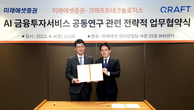 미래에셋증권과 크래프트 테크놀로지스는 양자 간 AI 인공지능 모델 공동 연구를 통해 모든 영역에 경계가 없어지는 빅 블러(Big Blur) 현상에 맞서 개인 맞춤형 비대면 자산관리 서비스를 구현하고 상호 협력체계를 구축할 예정이다.