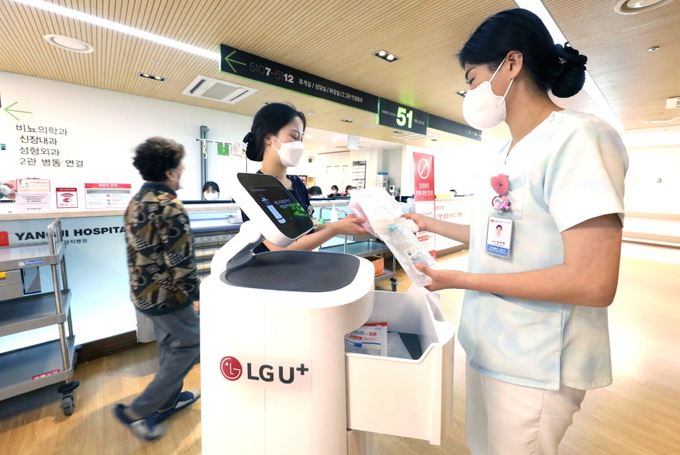 LG유플러스도 로봇 서비스 개발에 한창이다. LG유플러스는 지난해 11월부터 서울 관악구 에이치플러스(H+) 양지병원에 통신 네트워크 기반 자율주행 ‘약제배송 로봇’을 공급했다. 이 로봇은 일반 약품은 물론, 항암제나 마약성 진통제 등 직원이 직접 운반하면 위험한 약품을 하루 2번 배송한다.