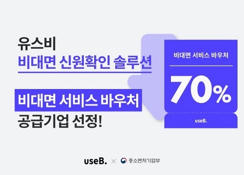 [세계비즈=황지혜 기자] 비대면 본인인증 서비스 기업 유스비(useB.)는 지난 29일 중소벤처기업부 주관 K-비대면 서비스 바우처 사업의 공급기업으로 선정됐다고 8일 밝혔다.