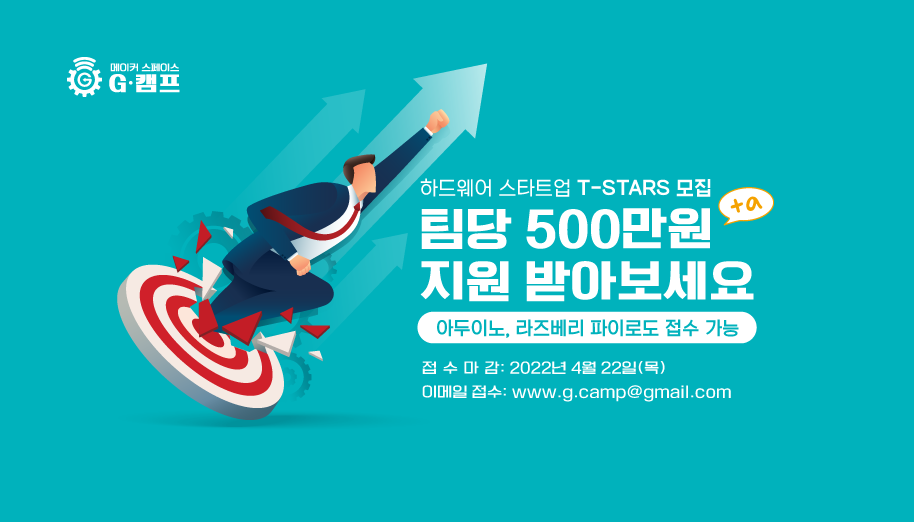 'T-STARS'는 2019년부터 G·CAMP에서 실시하고 있는 전기·전자 기반의 하드웨어 스타트업 육성사업으로 2021년까지 총 55개 팀을 선정해, 해당 팀들의 역량교육, 시제품 컨설팅, H/W, S/W 개발 멘토링, 크라우드 펀딩 등을 지원했다. 모집 기간은 오는 22일(금)까지이며 G·CAMP 홈페이지에서 참가신청이 가능하다.