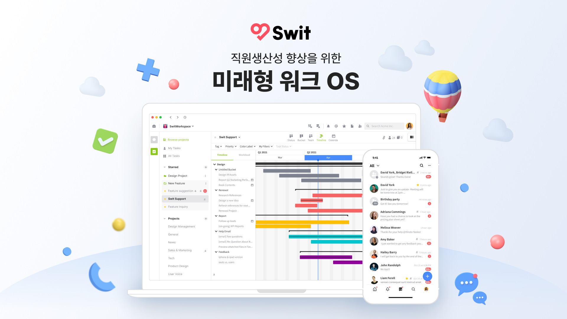 2019년 정식 버전 출시 이래 184개국 4만여개의 팀과 기업이 사용하는 협업 소프트웨어로 초고속 성장을 하고 있는 스윗은, 메신저와 업무관리를 결합하고 구글워크스페이스와 MS 365와의 완벽한 연동 및 대기업까지 확장 가능한 유연함으로 국내에서도 입지를 강화하고 있다.