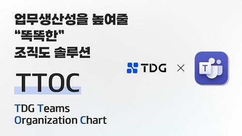[세계비즈=박보라 기자] 클라우드 전문 기업 티디지(TDG)가 Microsoft 팀즈(Teams)용 조직도 솔루션 ‘똑(TTOC)’(TDG Teams Organization Chart)을 출시했다고 13일 밝혔다.