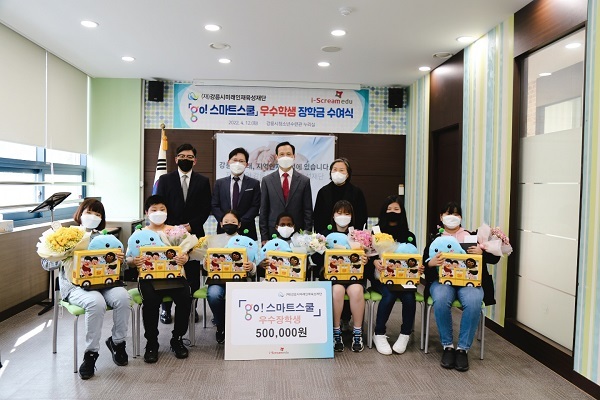 [세계비즈=황지혜 기자] 아이스크림에듀는 지난 12일 강릉시미래인재육성재단과 함께 'go! 스마트스쿨' 우수 학생 장학금 수여식을 개최했다고 13일 밝혔다.
