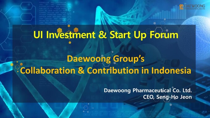 대웅제약은 지난 14일 인도네시아 국립대학교(University of Indonesia, UI)에서 열린 투자포럼 ‘UI Investment & Start Up Forum’에 전승호 대표가 실시간 비대면으로 참가해 대웅제약이 그동안 추진해 온 인도네시아 사업과 향후 계획을 소개하고, 우수 대학 및 인재와 함께 추진할 산학 연계 오픈 이노베이션의 현황과 계획을 공유했다.