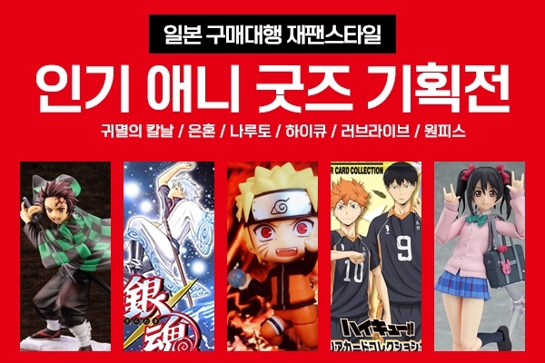 회사 측에 따르면 이번 기획전에서는 흥행 돌풍을 일으킨 애니메이션 귀멸의 칼날과 러브라이브, 은혼, 나루토, ‘하이큐’ 등 직구 매니아들의 소장 욕구를 불러 일으키는 인기 애니메이션 굿즈들을 만날 수 있다. 피규어, 코믹스, DVD, 게임 등 다양한 콘텐츠로 구성했다.