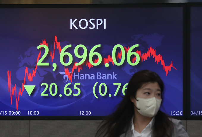 [세계비즈=주형연 기자] 15일 코스피지수는 전 거래일 대비 0.76% 내린 2696.06에 장을 마감했다.