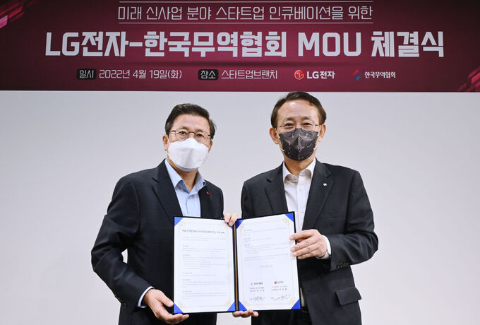 LG전자는 19일 서울 강남구 코엑스에서 신승관 한국무역협회(KITA) 전무, 장익환 LG전자 BS사업본부장 등이 참석한 가운데 한국무역협회와 B2B 미래 신사업 분야 스타트업 인큐베이션을 위한 업무협약을 체결했다.