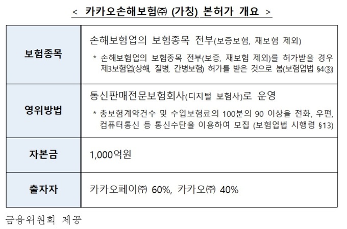 21일 금융업계에 따르면 금융위원회는 지난 13일 제7차 정례회의를 열고 카카오손보의 보험업 영위를 허가했다. 지난해 12월 본인가 신청을 한 지 약 4개월 만이다.