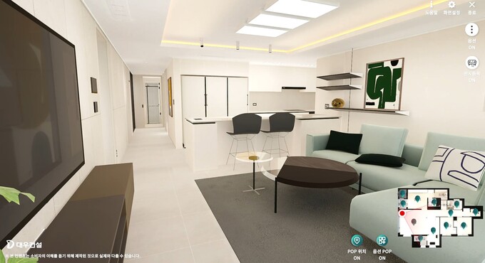또 공간을 이동하며 각종 분양 옵션 제품을 확인할 수 있으며, 전시용 상품 여부도 클릭 한번으로 확인할 수 있다.